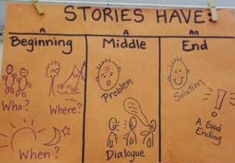 Rosa Parks teacher Brook Pessin-Whedbee teaches kindergartners how to tell stories
